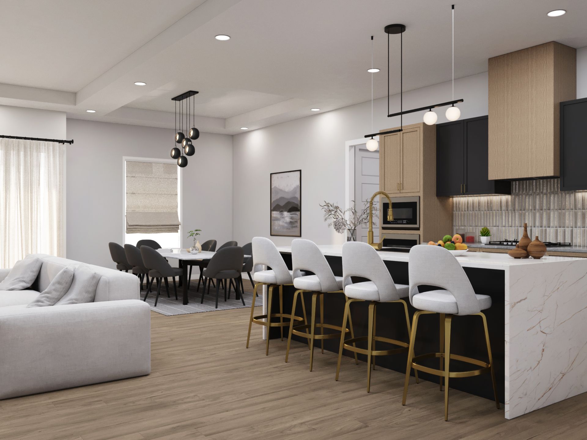 Designed for modern living, the Bellagio features an open floor plan that seamlessly connects the kitchen, living, and dining areas — ideal for both entertaining and everyday comfort. The gourmet kitchen is outfitted with sleek black stainless steel appliances, delivering a bold, contemporary look without sacrificing performance.
